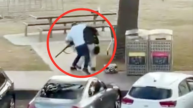 ভাইরাল ভিডিও ফুটেজে দেখা গেছে, সাদা শার্ট পরা ওই পথচারী পার্কিং লট থেকে দৌড়ে গিয়ে রাইফেল হাতে থাকা হামলাকারীকে পেছন থেকে জাপটে ধরেন। এরপর তিনি হামলাকারীর কাছ থেকে রাইফেল ছিনিয়ে নেন এবং সেটি হামলাকারীর দিকেই তাক করেন।