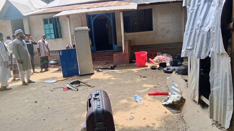 এ ছাড়া ঘরের ভেতরে থাকা টিভি, ফ্রিজ, আলমারিসহ সব আসবাব ভাঙচুরের দৃশ্য দেখা যায়। পাশাপাশি মসজিদেও হামলা চালিয়ে মাইক, পানির ট্যাংক ও জানালা ক্ষতিগ্রস্ত হয়েছে। এ ছাড়া মসজিদটির দ্বিতীয় তলার ছাদে ছড়িয়ে ছিটিয়ে থাকতে দেখা যায় নিক্ষেপের অসংখ্য ইটের টুকরো, এমনকি রক্তের ছোপ ছোপ দাগ।