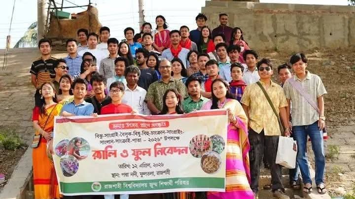 বিজু উপলক্ষে পদ্মা নদীতে ফুল ভাসিয়ে মঙ্গল ও শান্তি কামনা করেছেন রাজশাহী বিশ্ববিদ্যালয়ের (রাবি) পাহাড়ি শিক্ষার্থীরা। আজ রোববার পাহাড়ি শিক্ষার্থীদের সংগঠন ‘জুম্ম শিক্ষার্থী পরিবার’-এর ব্যানারে এই কর্মসূচি পালন করেন তাঁরা।