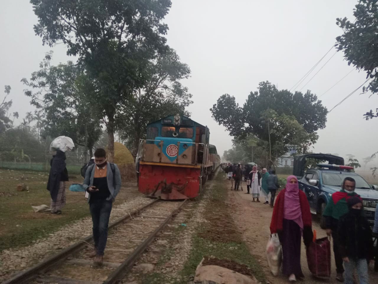 ট্রেনটির সহকারী চালক হাসিম উদ্দিন বলেন, ‘কুয়াশার কারণে ট্রেনের গতি ছিল ৫০ কিলোমিটার। স্টেশনের আগে আউটার সিগনাল ঝুঁকি থাকায় সেখানে ট্রেনটি থামানোর কথা ছিল। যার কারণে গতিসীমা ২০ কিলোমিটারে নিয়ে আসা হয়। ২০ কিলোমিটার গতি থাকা অবস্থায় দুর্ঘটনা হওয়ায় তেমন কোনো ক্ষয়ক্ষতি হয়নি।’