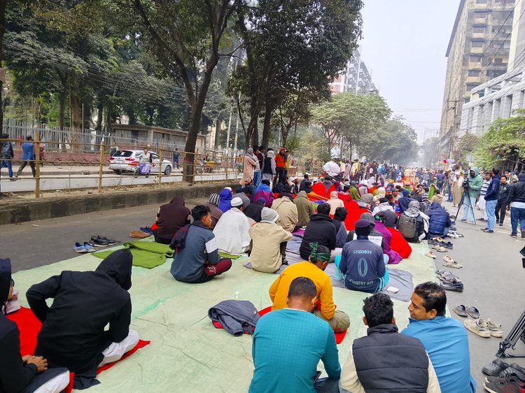 চারদিকে কুয়াশা আর হাড়কাঁপানো ঠান্ডার মধ্যেও শাহবাগ মোড় আন্দোলনের উত্তাপে সরব। হাদি হত্যায় জড়িত ব্যক্তিদের গ্রেপ্তার না করা পর্যন্ত অবস্থান কর্মসূচি চালিয়ে যাওয়ার ঘোষণা দিয়েছেন ইনকিলাব মঞ্চের সদস্যসচিব আব্দুল্লাহ আল জাবের।