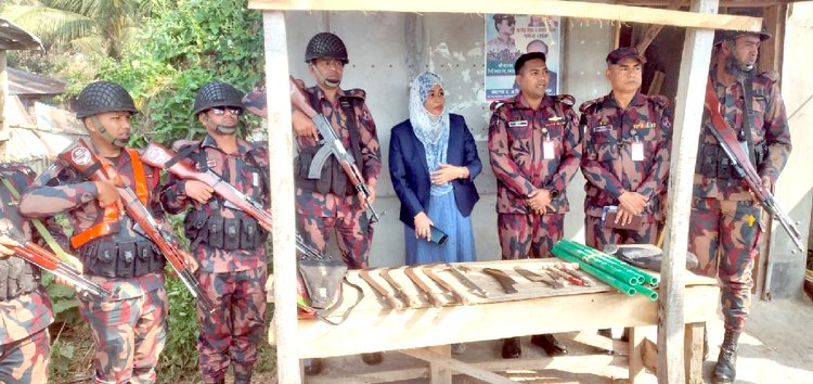 অভিযানকারী দল জানায়, ফার্নিচারের দোকানে তল্লাশি চালিয়ে ছয়টি হাসুয়া, তিনটি করাত, তিনটি চাকু, একটি বড় হাতুড়ি এবং সাতটি লোহার হাতুড়ি উদ্ধার করা হয়। নাশকতার উদ্দেশ্যে এসব দেশীয় অস্ত্র মজুত করে রাখা হয়েছিল বলে প্রাথমিকভাবে ধারণা করা হচ্ছে।