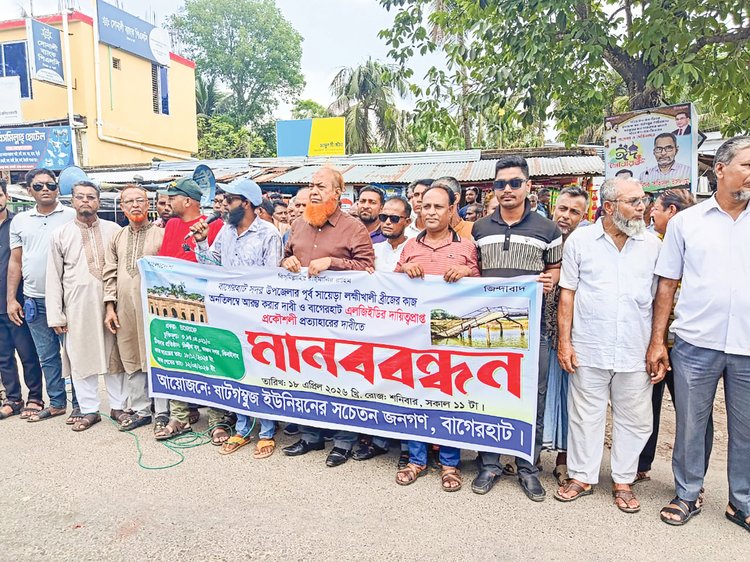 বক্তারা বলেন, ‘এলাকাবাসীর দাবি—কাজ না করে ঠিকাদার বিলের একটা অংশ তুলে নিয়েছেন। আর ভাঙা নড়বড়ে কাঠের পুলের কারণে ভোগান্তিতে পড়তে হচ্ছে জনগণকে। বর্তমান ঠিকাদারের নিয়োগ বাতিল করে দ্রুত নতুন ঠিকাদার দিয়ে ব্রিজের কাজ সম্পন্ন করার দাবি জানাই।’