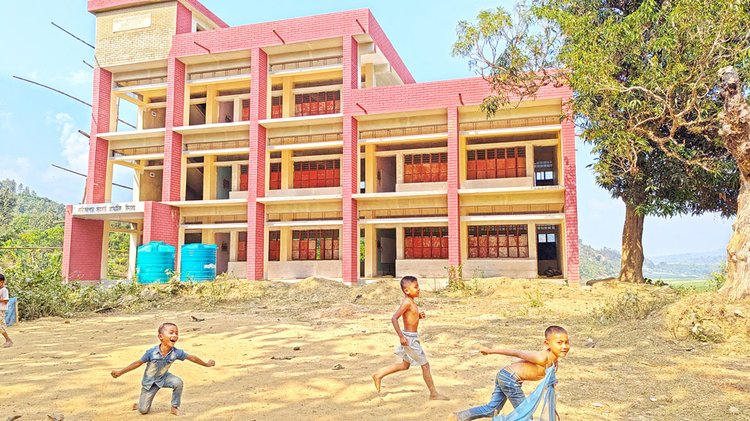 ২০২২ সালের জুনে কাজ শুরু করে দুই বছরের মধ্যে ২০২৪ সালের জুনে স্কুল ভবন হস্তান্তরের কথা ছিল ঠিকাদার প্রতিষ্ঠানের। কিন্তু ভবনের মূল কাজ শেষ হয় ২০২৫ সালের জুনের দিকে। এর পর থেকে সিঁড়ি, কিছু দরজা-জানালা স্থাপন ও শ্রেণিকক্ষের আসবাব সরবরাহ না করেই ভবনের কাজ ফেলে রাখা হয়। ঠিকাদার প্রতিষ্ঠানের ভাষ্য, নির্মাণসামগ্রীর মূল্য বেড়ে গেছে। আসন্ন জাতীয় সংসদ নির্বাচনের পর নির্মাণসামগ্রীর দাম কমলে বাকি কাজ করা হবে।