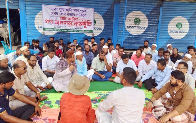 ২০১৮ সালের অক্টোবরে ভাঙ্গা-বরিশাল-সমুদ্রসৈকত কুয়াকাটা মহাসড়ক চার লেন প্রকল্প একনেকে পাস হয়। কিন্তু আট বছর পেরিয়ে গেলেও ওই প্রকল্পের কাজ শুরু হয়নি। চলতি বছরের জানুয়ারি থেকে এপ্রিল পর্যন্ত এই সড়কের পটুয়াখালী-কুয়াকাটার অংশের আমতলী এলাকায় শতাধিক দুর্ঘটনায় অন্তত ১০ জন নিহত হয়েছেন। ১৪ এপ্রিল এই সড়কের আমতলী ফায়ার সার্ভিস এলাকায় ট্রাকের চাপায় মিরাজুল ইসলাম শাওন ও বেল্লাল মুসল্লি নামের দুই অটোরিকশাযাত্রী নিহত হয়েছেন। এই দুই যাত্রী নিহত হওয়ার পর নড়েচড়ে বসেছে ‘আমতলী উপজেলার সচেতন নাগরিক’ প্ল্যাটফর্ম। গত সকাল ৯টায় পটুয়াখালী-কুয়াকাটা মহাসড়কের আমতলী এ কে স্কুল পয়েন্টে গণ-অনশন কর্মসূচি শুরু করে।