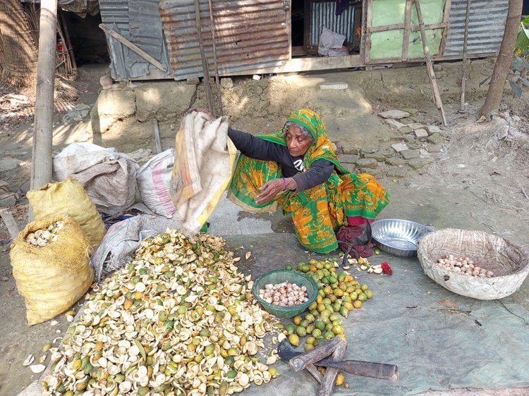 আলেয়া বেগম বলেন, ‘১০০ সুপারিতে হয় এক কুড়ি। ১০ কুড়ি সুপারি ছিলাতে পারলে ৫০০ টাকা পাওয়া যায়। কিন্তু বয়স আর শরীরের কষ্টে ১ হাজার সুপারি ছিলাতে আমার ৭ দিন লাগে। ৭ দিনে ৫০০ টাকা দিয়েই তাঁর একার আহার চলে।’