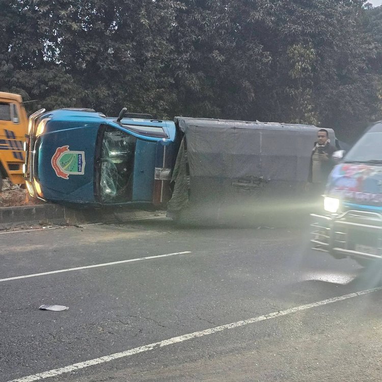 প্রত্যক্ষদর্শীরা জানান, মহাসড়কে দায়িত্ব পালনকালে হাইওয়ে পুলিশ ও থানা-পুলিশের দুটি টহল গাড়ি বালুয়াকান্দি বাসস্ট্যান্ড এলাকায় রাস্তার পাশে অবস্থান করছিল। এ সময় দ্রুতগতিতে আসা একটি কাভার্ড ভ্যান নিয়ন্ত্রণ হারিয়ে টহলরত গাড়ি দুটিকে সজোরে ধাক্কা দেয়। এতে পুলিশের দুটি গাড়ি উল্টে যায় এবং দুজন পুলিশ সদস্য আহত হন।