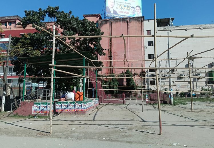 বুধবার (১৯ নভেম্বর) সন্ধ্যায় টাউন হল মাঠে গিয়ে দেখা গেছে, পূর্ব পাশে চেয়ারপারসনের উপদেষ্টা হাজী আমিন উর রশিদ ইয়াছিনের অনুসারীরা দোয়া ও আলোচনা সভার প্রস্তুতি হিসেবে মঞ্চ ও প্যান্ডেল তৈরিতে ব্যস্ত। একই সময়ে মাঠের পশ্চিম অংশে মনিরুল হক চৌধুরী গ্রুপের নেতা-কর্মীরা নির্বাচনী জনসভার জন্য পৃথক মঞ্চ প্রস্তুত করছেন এবং প্যান্ডেল তৈরির সামগ্রী আনা-নেওয়া চলছে। দুই গ্রুপের সমান্তরাল তৎপরতা দেখতে কৌতূহলী জনতা ভিড় জমান। আর মাঠজুড়ে দলীয় কর্মীদের সরব উপস্থিতিও চোখে পড়ে।