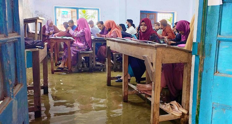 আরেক পরীক্ষার্থী সুমাইয়া আক্তার বলেন, পানিটা শুধু বৃষ্টির নয়, আশপাশের ড্রেনের নোংরা পানি কক্ষে ঢুকছে। এতে স্বাস্থ্যঝুঁকি বাড়ছে। এই অবস্থায় মনোযোগ দিয়ে পরীক্ষা দেওয়া খুব কঠিন।