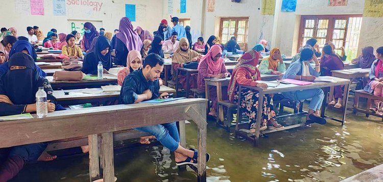 দুই দিনের টানা বৃষ্টিতে জলাবদ্ধ হয়ে পড়েছে কুমিল্লা ভিক্টোরিয়া সরকারি কলেজের ডিগ্রি শাখা ক্যাম্পাস। এর মধ্যেই শুরু হয়েছে জাতীয় বিশ্ববিদ্যালয়ের অনার্স চতুর্থ বর্ষের চূড়ান্ত পরীক্ষা। বাধ্য হয়ে হাঁটুসমান নোংরা পানিতে বসেই পরীক্ষা দিতে হয়েছে শিক্ষার্থীদের—যা নিয়ে তৈরি হয়েছে চরম ক্ষোভ।