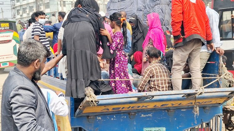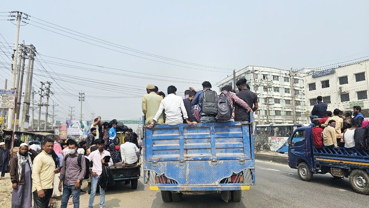 ভোট প্রয়োগের জন্য বাড়ি ফেরার পথে গাজীপুরের শিল্প অধ্যুষিত শ্রীপুর উপজেলায় গণপরিবহনের সংকটে পড়েছেন হাজারো শ্রমিক। বাস না পেয়ে ট্রাক ও পিকআপে গাদাগাদি করে ঝুঁকি নিয়ে গন্তব্যের পথে রওনা হয়েছেন তাঁরা। এতে স্বাভাবিক সময়ের তুলনায় কয়েক গুণ বেশি ভাড়া গুনতে হচ্ছে যাত্রীদের।