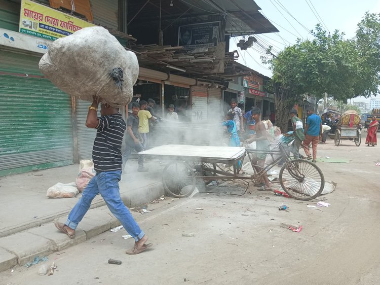আল্লাহর দান এন্টারপ্রাইজের মালিক নিজাম উদ্দিন বলেন, ‘এখানে লোকজনের তেমন আনাগোনা থাকে না। সবাই দোকানের সামনে মালামাল রেখে কাজ করে। আমিও কাজ করছি। আজকে ম্যাজিস্ট্রেট এসে ২০ হাজার টাকা জরিমানা করেছেন। অথচ ঈদের পর এক টাকাও বিক্রি করতে পারিনি। এখন টাকা দেওয়ার কোনো উপায় নাই। জেলই খাটতে হবে।’