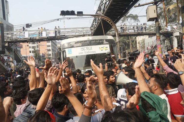 অন্যদিকে সরকারি বাঙলা কলেজের শিক্ষার্থীরা টেকনিক্যাল ক্রসিংয়ে অবস্থান নেওয়ায় ওই এলাকায় যান চলাচল বন্ধ হয়ে গেছে।