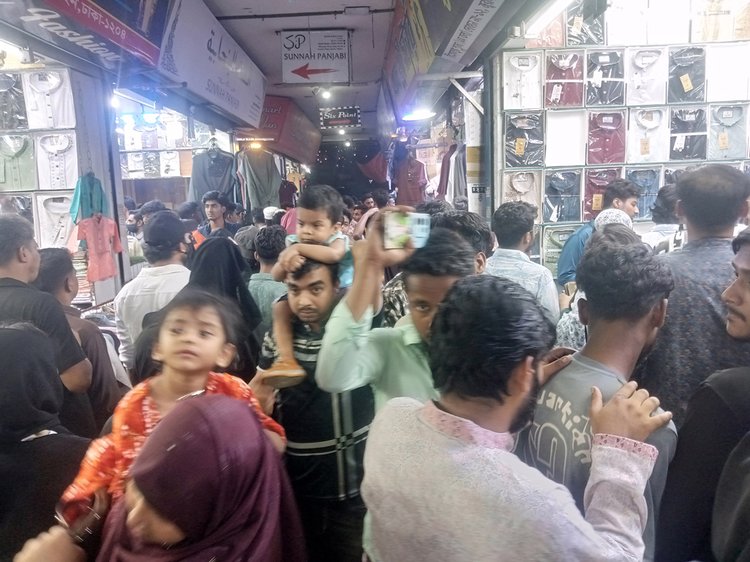 পবিত্র ঈদুল ফিতরের প্রায় এক সপ্তাহ বাকি থাকতেই রাজধানীর জুরাইনের শপিং মলগুলোতে দেখা গেছে ক্রেতাদের উপচে পড়া ভিড়। গতকাল শুক্রবার সকাল থেকেই এসব শপিং মলগুলোতে কেনাকাটা করতে আসেন ক্রেতারা। ফুটপাতের দোকানগুলোতেও ভিড় দেখা গেছে।