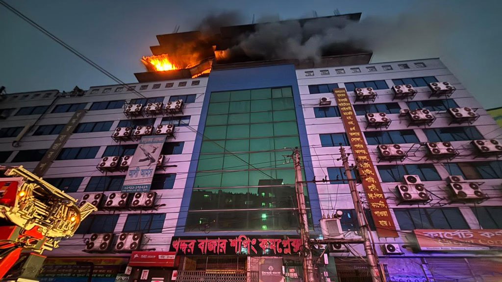ফায়ার সার্ভিসের নয়টি ইউনিটের দেড় ঘণ্টার চেষ্টায় নিয়ন্ত্রণে এসেছে রাজধানীর গুলিস্তানের জিরো পয়েন্টে খদ্দর বাজার শপিং কমপ্লেক্সের ছাদের ওপরে গোডাউনে লাগা আগুন।