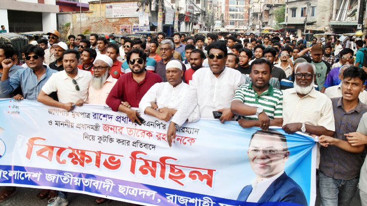 রাজশাহী মহানগর ছাত্রদলের সাবেক সাংগঠনিক সম্পাদক রাকিন রায়হানের সভাপতিত্বে অনুষ্ঠিত বিক্ষোভ মিছিল ও সমাবেশে প্রধান অতিথি ছিলেন রাজশাহী মহানগর বিএনপির সভাপতি মামুনুর রশিদ। এ ছাড়া ছাত্রদলের বিভিন্ন পর্যায়ের নেতা-কর্মীরা উপস্থিত ছিলেন।