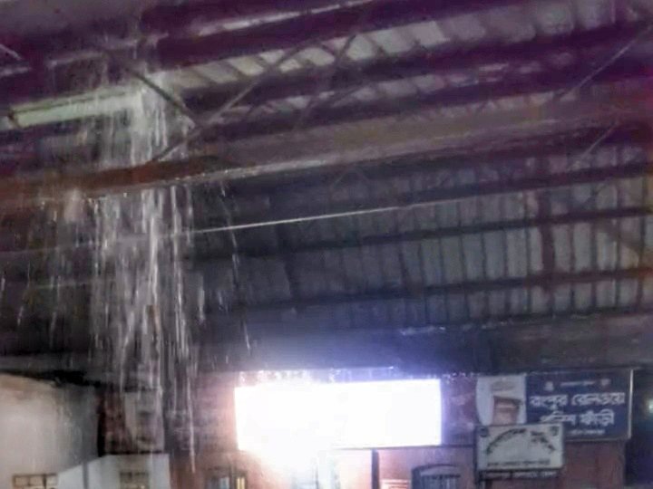 রোববার বৃষ্টির সময় সরেজমিন দেখা যায়, টিনের ছাউনির বিভিন্ন স্থানে বড় বড় ছিদ্র দিয়ে অঝোরে পানি পড়ছে। এতে প্ল্যাটফর্মের বিভিন্ন অংশ কাদাপানিতে একাকার হয়ে যায়।