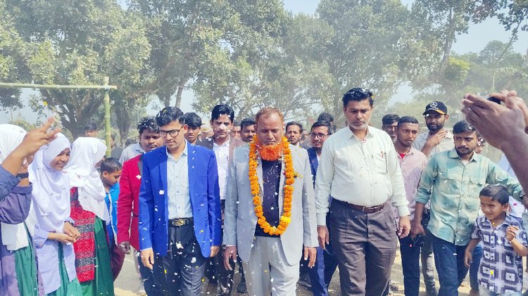 সম্প্রতি অবসর নেওয়া বিদ্যালয়ের সাবেক প্রধান শিক্ষক ইউসুফ আলীকে এমন ব্যতিক্রমী আয়োজনে বিদায় জানান প্রায় ৫০০ প্রাক্তন শিক্ষার্থী।