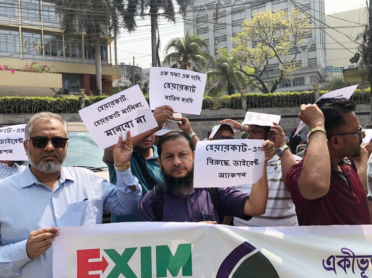 সম্মিলিত ইসলামী ব্যাংকের আমানতকারীদের ওপর আরোপিত ‘হেয়ারকাট’ সিদ্ধান্তকে প্রত্যাহারের দাবিতে বাংলাদেশ ব্যাংকের সামনে মানববন্ধন করেছেন ভুক্তভোগী আমানতকারীরা। আজ বৃহস্পতিবার (৫ মার্চ) সকাল থেকে তাঁরা বাংলাদেশ ব্যাংকের সামনে মানববন্ধন শুরু করে।