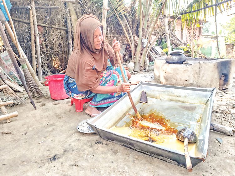 শীতের রাত পেরিয়ে ভোরের আলো ফোটার আগেই যশোরের গ্রামাঞ্চলে শুরু হয় ব্যস্ততা। খেজুরগাছের নিচে হাজির হন গাছিরা। আগের বিকেলে কাটা গাছের ‘চোখ’ বেয়ে সারা রাত মাটির হাঁড়িতে জমেছে সুমিষ্ট খেজুর রস। ভোরে সেই রস নামিয়ে শুরু হয় আরেক কর্মযজ্ঞ; চুলায় জ্বাল দিয়ে গুড় তৈরির কাজ। বাড়ির নারীরাই মূলত এই প্রক্রিয়ায় নেতৃত্ব দেন। কয়েক ঘণ্টা জ্বালানোর পর তৈরি হয় সুস্বাদু খেজুর গুড় ও পাটালি।