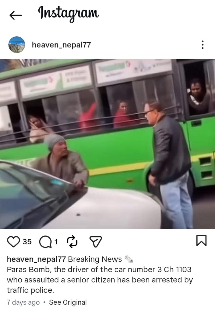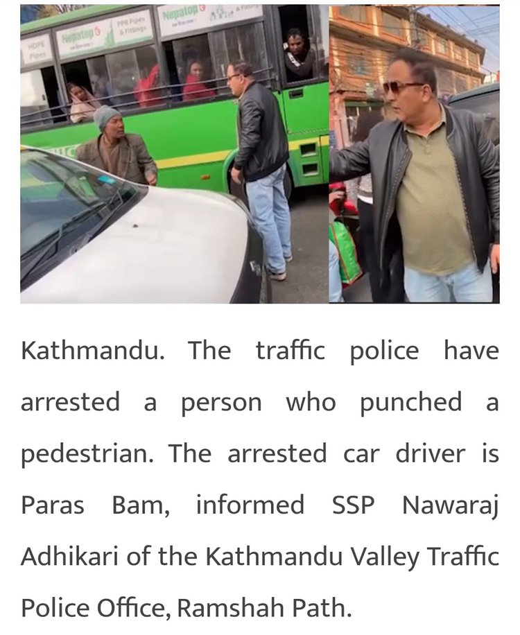 বিষয়টি নিয়ে আরও অনুসন্ধানে ১৭ ফেব্রুয়ারি নেপালের হিন্দি ভাষার গণমাধ্যম Khabarcenter.com-এ একটি প্রতিবেদন খুঁজে পাওয়া যায়। প্রতিবেদন থেকে জানা যায়, কাঠমান্ডুতে এক পথচারীকে ঘুষি মারার অভিযোগে গাড়িচালক পরশ বমকে গ্রেপ্তার করেছে ট্রাফিক পুলিশ। কাঠমান্ডু ভ্যালি ট্রাফিক পুলিশের এসএসপি নবরাজ অধিকারী এ তথ্য জানান।