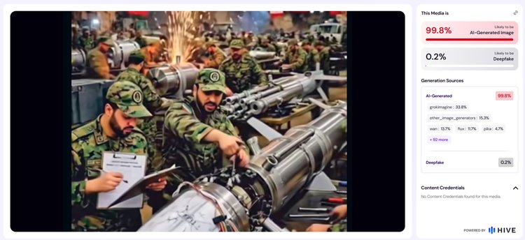 বিষয়টি নিশ্চিত হতে ফ্যাক্টচেক টিম এআই কনটেন্ট শনাক্তকারী প্ল্যাটফর্ম Hive Moderation (হাইভ মডারেশন)–এর সহায়তা নেয়। পরীক্ষায় দেখা যায়, ছবিগুলো কৃত্রিম বুদ্ধিমত্তা (এআই) দিয়ে তৈরি হওয়ার সম্ভাবনা প্রায় ১০০ শতাংশ।