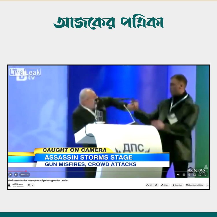 অনুসন্ধানে আলোচিত দাবির পক্ষে কোনো আন্তর্জাতিক গণমাধ্যমে প্রতিবেদন বা তথ্য পাওয়া যায়নি। সংশ্লিষ্ট ভিডিওর কয়েকটি কি-ফ্রেম রিভার্স ইমেজ সার্চ করলে আন্তর্জাতিক সংবাদমাধ্যম ABC News-এর ২০১৩ সালের ২০ জানুয়ারি প্রকাশিত একটি ভিডিওর সঙ্গে এটির মিল পাওয়া যায়। ‘Failed Assassination Attempt on Bulgarian Opposition Leader’শিরোনামের ওই ভিডিও থেকে জানা যায়, এটি ২০১৩ সালে বুলগেরিয়ার একটি রাজনৈতিক দলের নেতা আহমেদ দোগানের ওপর হামলার ভিডিও।