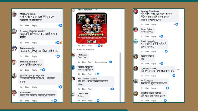 পোস্টগুলোর মন্তব্যে দেখা যায়, বেশিরভাগ ব্যবহারকারী ভিডিওটি সত্য মনে করে মন্তব্য করেছেন। কেউ কেউ আবার ঘটনাটি সত্য কিনা জানতে চেয়েছেন। শেয়ার করা এসব অ্যাকাউন্ট ও পেজের পোস্টগুলো পর্যবেক্ষণ করে দেখা গেছে, অধিকাংশ পোস্টে আওয়ামী লীগের পক্ষে এবং বিগত অন্তর্বর্তীকালীন সরকার, বিএনপি ও অন্যান্য রাজনৈতিক দলের সমালোচনামূলক কথা বলা হয়েছে।