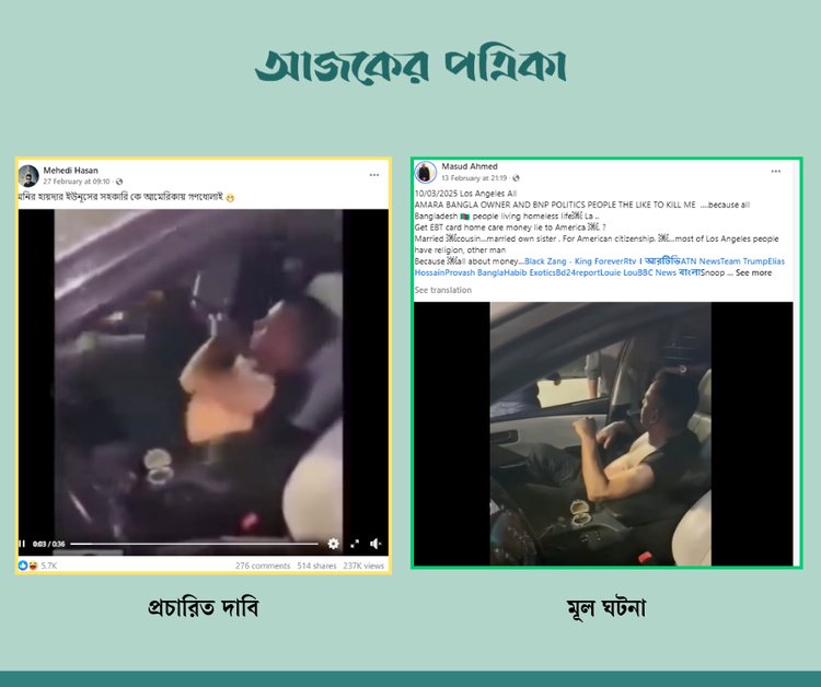 এই দাবিতে ‘Mehedi Hasan’ নামের ফেসবুক অ্যাকাউন্ট থেকে গত ২৭ ফেব্রুয়ারি (শুক্রবার) সকাল ৯টা ১০ মিনিটে পোস্টটি শেয়ার করা হয়। ‘মনির হায়দার ইউনূসের সহকারি কে আমেরিকায় গণধোলাই’ ক্যাপশনে ছড়িয়ে পড়া ভিডিওটি আজ মঙ্গলবার সকাল ১১টা ২০ পর্যন্ত ২ লাখ ৩৭ হাজার বার দেখা হয়েছে। পোস্টটি ৫১৪ বার শেয়ার হয়েছে এবং এতে ৫ হাজার ৭০০ রিয়েকশন পড়েছে। এতে কমেন্ট পড়েছে ২৭৬টি।