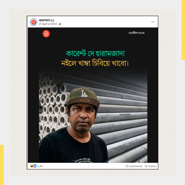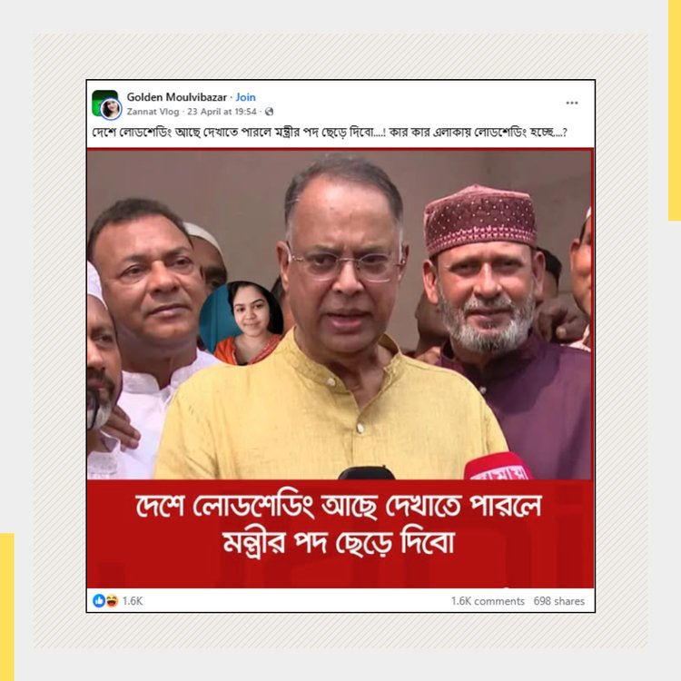 পর্যালোচনায় দেখা যাচ্ছে, লোডশেডিং ও বিদ্যুৎ সংকটের মতো সংবেদনশীল ইস্যুকে কেন্দ্র করে সামাজিক যোগাযোগমাধ্যমে একটি পরিকল্পিত গুজবচক্র সক্রিয় রয়েছে। তারা বাস্তব সমস্যাকে কাজে লাগিয়ে পরিচিত ব্যক্তিদের নাম ব্যবহার করে চটকদার ও উত্তেজনাপূর্ণ ফটোকার্ড তৈরি করছে। এসব কনটেন্টে কোনো সূত্র, প্রেক্ষাপট বা প্রমাণ না থাকলেও দ্রুত ভাইরাল হয়ে যাচ্ছে, কারণ অনেক ব্যবহারকারী না জেনেই এগুলো শেয়ার করছেন। ফলে একটি বাস্তব সংকটকে ঘিরে জনমনে বিভ্রান্তি আরও বাড়ছে।