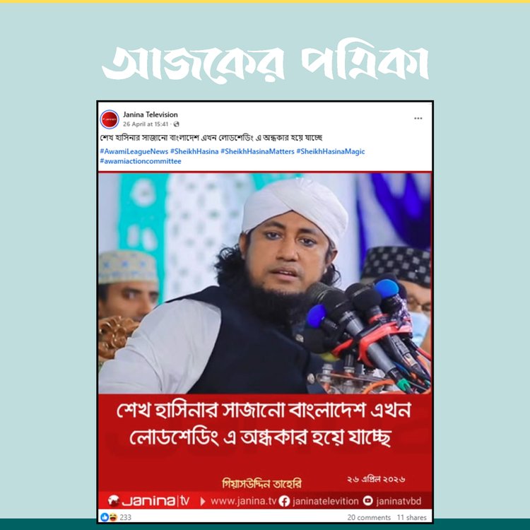 বিষয়টি নিয়ে আরও অনুসন্ধানে দেখা যায়, ‘Janina Television’ নামের একটি স্যাটায়ারধর্মী ফেসবুক পেজ থেকে ২৬ এপ্রিল বিকেল ৩টা ৪১ মিনিটে একই দাবিতে একটি পোস্ট শেয়ার করা হয়। পরবর্তীতে সেখান থেকে বিভিন্ন পেজ ও ব্যবহারকারীর মাধ্যমে দাবিটি ছড়িয়ে পড়ে। ওই পেজটি মূলত নিয়মিত ব্যঙ্গাত্মক ও কাল্পনিক কনটেন্ট প্রকাশ করে থাকে।