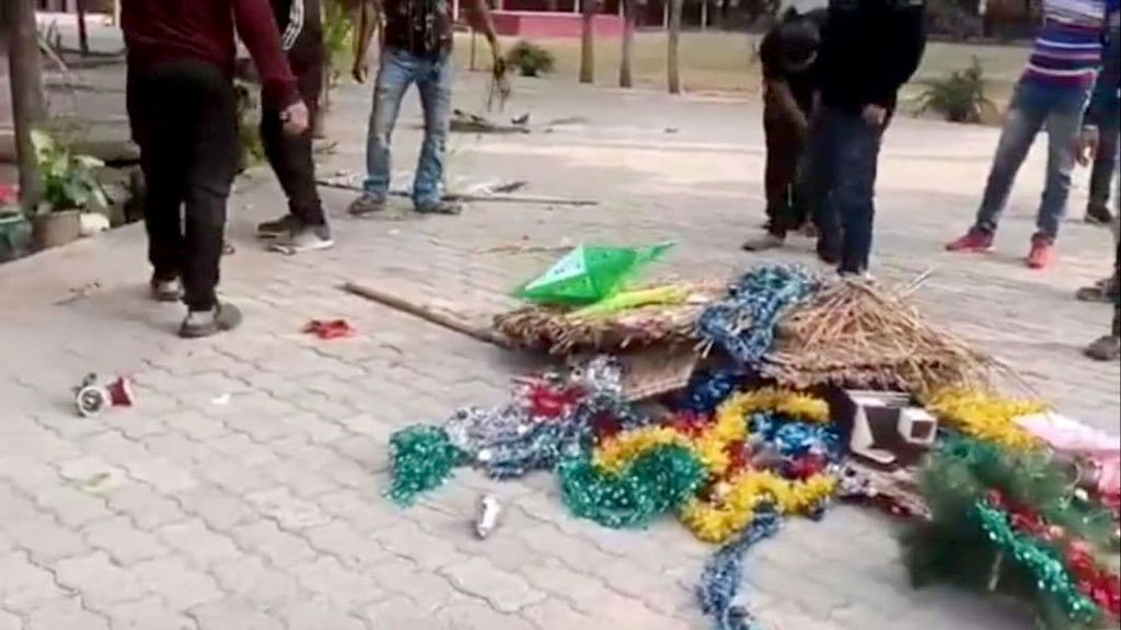 ছত্তিশগড়ের রাজধানী রায়পুরের একটি শপিং মলে ডানপন্থী দলের সদস্যরা বড়দিনের সাজসজ্জা ভাঙচুর করেছেন। ভারতীয় সংবাদমাধ্যম দি ইন্ডিয়ান এক্সপ্রেসকে মলের এক কর্মচারী বলেন, ‘৮০-৯০ জন মানুষ সেখানে ঢুকে পড়ে। ১৬ বছর ধরে আমরা এখানে কার্যক্রম চালাচ্ছি, কিন্তু এমন আচরণ কখনো দেখিনি। দলটি আমাদের হুমকি দেয় এবং গালিগালাজ ও সহিংসতা চালায়।’