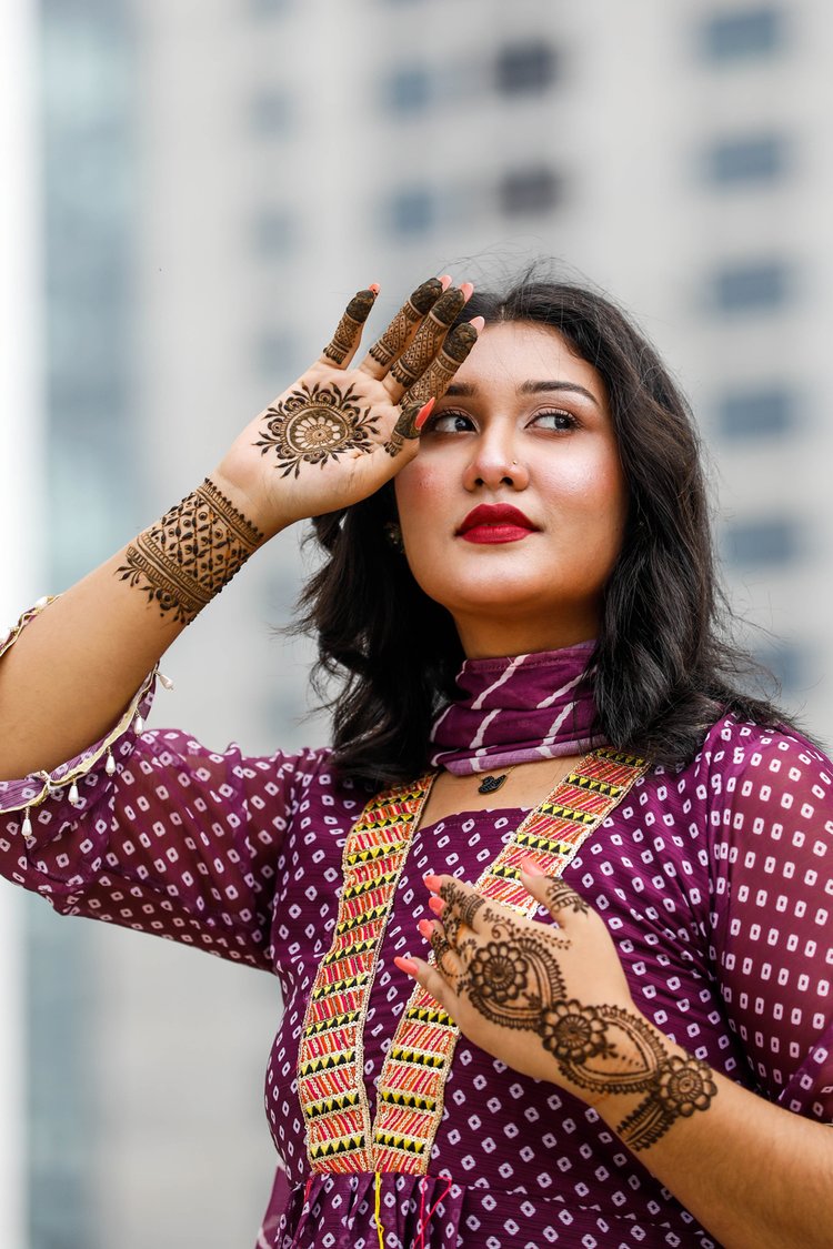 উৎসবে নিজেকে সাজাতে মেয়েদের জন্য মেহেদি এক অনন্য অনুষঙ্গ। আগেকার দিনে ঈদে হাতভর্তি নকশায় মেহেদি লাগানোর চল থাকলেও এখন সময়ের সঙ্গে সঙ্গে সেই চলে বদল এসেছে। এখনকার তরুণীরা ঘণ্টার পর ঘণ্টা বসে মেহেদি লাগানোর চেয়ে ছিমছাম বা এককথায় সিম্পল নকশা বেশি পছন্দ করছেন। মেহেদির সৌন্দর্য কেবল তার গাঢ় রঙে নয়, বরং তার পরিচ্ছন্ন নকশায়।