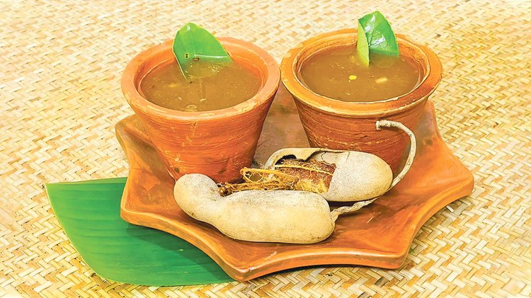 পাকা তেঁতুল ৫ থেকে ৬ ঘণ্টা পানিতে ভিজিয়ে রাখুন। পরে তেঁতুলের বিচি ফেলে দিয়ে সব উপকরণ একসঙ্গে মিশিয়ে নিন। তারপর গ্লাসে ঢেলে লেবুপাতা আর বরফকুচি দিয়ে পরিবেশন করুন।