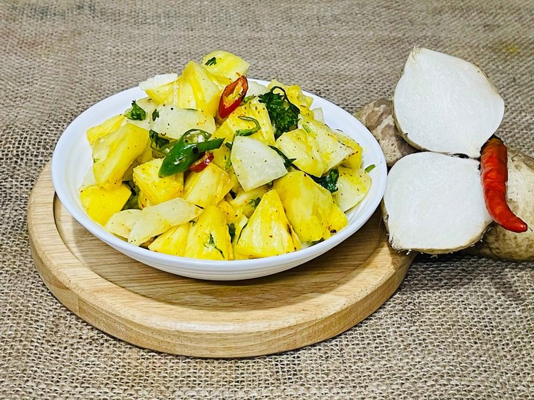 শাকালু আর আনারস ধুয়ে খোসা ছাড়িয়ে নিন। এবার দুটিই কিউব করে কেটে রাখুন। এরপর কাঁচা মরিচ ও ধনেপাতা কুচি সামান্য থেঁতো করে নিন। তারপর সার্ভিং প্লেটে শাকালু রেখে কাঁচা মরিচ ও ধনেপাতা কুচি, লবণ, বিট লবণ, টালা মরিচ গুঁড়া, লেবুর রস আর কাসুন্দি একসঙ্গে মেখে নিলে তৈরি হয়ে যাবে আনারস ও শাকালুর সালাদ।