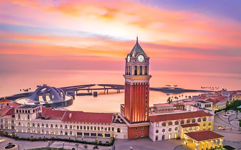 ফু কুয়োকের সান সেট টাউন এলাকায় গেলে ভূমধ্যসাগরীয় আমেজ আরও গাঢ় হয়ে ধরা দেয়। রোমান কলোসিয়াম থেকে অনুপ্রাণিত হয়ে তৈরি করা হয়েছে হন থম কেব্ল কার স্টেশন, আর ভেনিসের সেন্ট মার্কস ক্যাম্পানিল টাওয়ারের আদলে গড়া ক্লক টাওয়ার। এগুলো পর্যটকদের ক্ষণিকের জন্য ইউরোপের কোনো প্রাচীন চত্বরে নিয়ে যায়। ফু কুয়োক মানেই দিগন্তজোড়া সূর্যাস্তের খেলা। সান সেট টাউনের পাথুরে সিঁড়ি কিংবা বাগানবিলাস ঘেরা বারান্দায় বসে আকাশ আর সমুদ্রের রঙের বদল দেখা যায়। তবে এই স্থাপত্যগুলো শুধু বিদেশের অন্ধ অনুকরণ নয়; এখানকার স্থাপত্যবিদেরা ইতালির নকশাকে ফু কুয়োকের আর্দ্র জলবায়ু আর কড়া রোদ-বৃষ্টির উপযোগী করে নতুন রূপ এনে দিয়েছেন। তাই বাড়ির রঙিন দেয়ালে যেমন ইউরোপের ছোঁয়া আছে, তেমনি ছাদে আর বারান্দার সবুজে মিশে আছে খাঁটি ভিয়েতনামি আবহ।