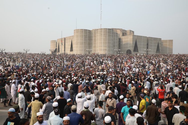 আজ বেলা আড়াইটার দিকে জাতীয় সংসদ ভবনের দক্ষিণ প্লাজায় লাখো মানুষের অংশগ্রহণে হাদির জানাজা সম্পন্ন হয়। জানাজায় ইমামতি করেন ওসমান হাদির বড় ভাই আবু বকর সিদ্দিক।