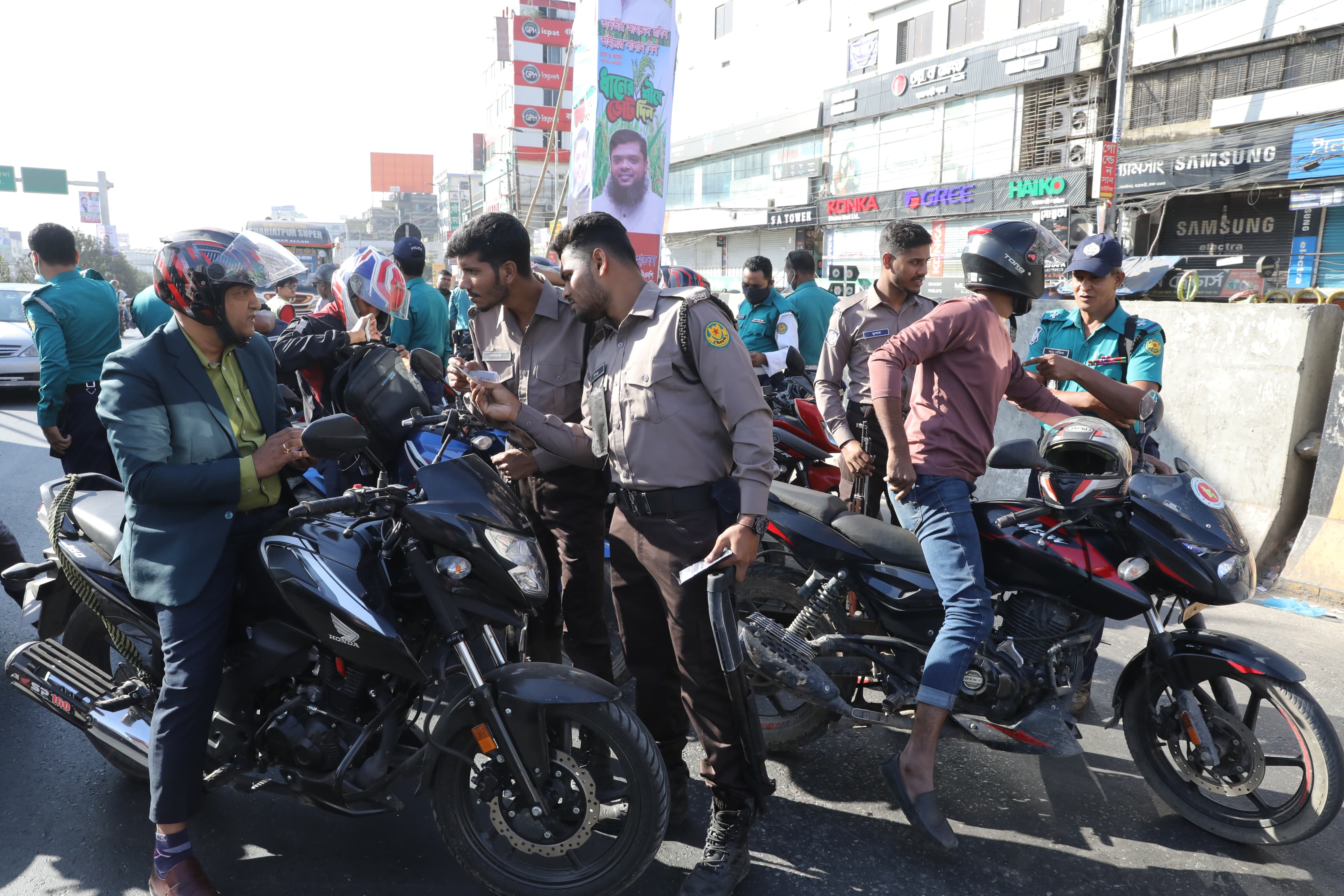 শেখ হাসিনার বিরুদ্ধে মানবতাবিরোধী মামলার রায়কে কেন্দ্র করে সতর্ক অবস্থানে আইনশৃঙ্খলা বাহিনীর সদস্যরা। চলছে ব্যাপক তল্লাশি। ছবি: আজকের পত্রিকা