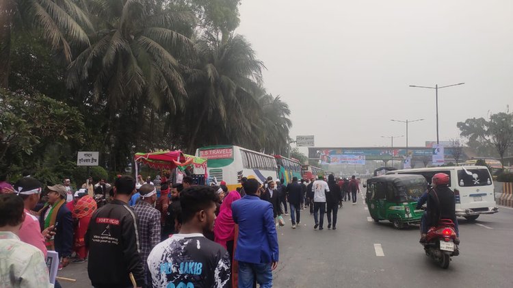 ভোরের আলো ফোটার সঙ্গে সঙ্গেই খণ্ড খণ্ড মিছিল নিয়ে নেতা-কর্মীরা গণসংবর্ধনাস্থলে জড়ো হতে শুরু করেন। কুড়িল বিশ্বরোড থেকে শুরু করে ৩০০ ফুট সড়কের দুই পাশ এখন লোকে লোকারণ্য। হাতে জাতীয় পতাকা এবং দলীয় পতাকার পাশাপাশি তারেক রহমানের ছবি-সংবলিত ফেস্টুন নিয়ে কর্মীরা স্লোগান দিচ্ছেন—‘মা-মাটি ডাকছে, তারেক রহমান আসছে’, ‘তারেক রহমান আসছে, বাংলাদেশ হাসছে’।