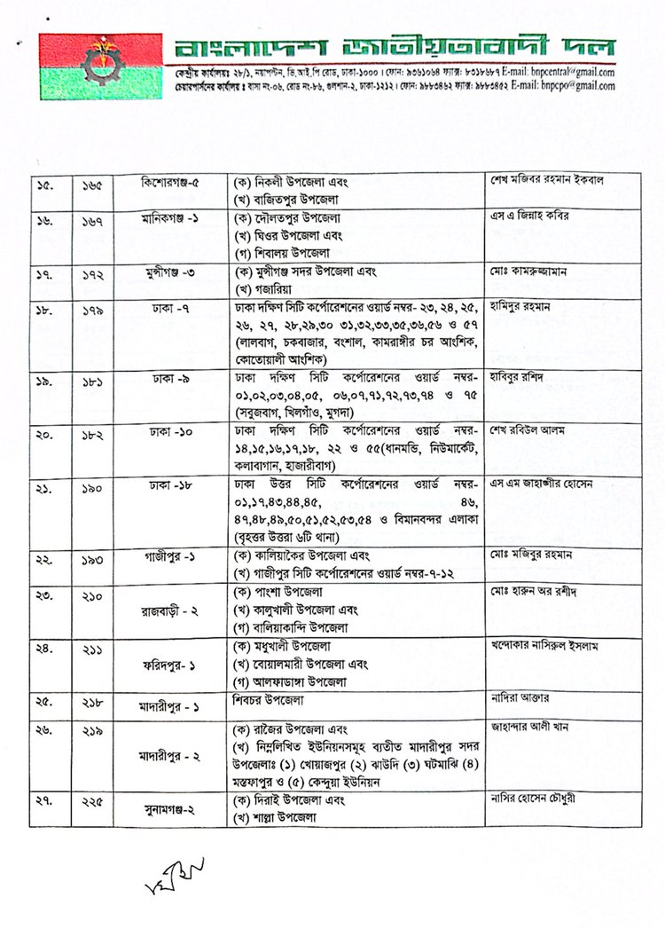 এর আগে গত ৩ নভেম্বর ২৩৭ আসনে প্রার্থী ঘোষণা করেছিল বিএনপি।