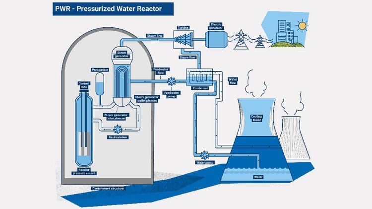 প্রেসারাইজড ওয়াটার রিঅ্যাক্টর (পিডব্লিউআর): এখানে রিঅ্যাক্টর কোরের ভেতর পানিকে অত্যন্ত উচ্চ চাপে রাখা হয় যাতে তা ফুটতে না পারে। এই অতি-তপ্ত পানি একটি হিট এক্সচেঞ্জারের ভেতর দিয়ে গিয়ে অন্য একটি পৃথক পানির উৎসকে বাষ্পীভূত করে। যুক্তরাষ্ট্রের ৬৫ শতাংশ রিঅ্যাক্টর এই প্রযুক্তির।