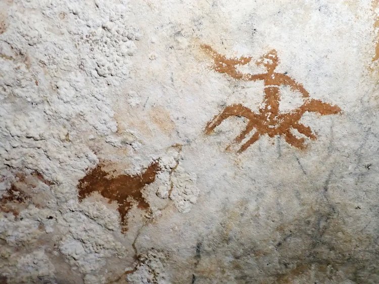 আবিষ্কার হওয়া শিল্পকর্মগুলোর একটিতে মানব হাতের ছাপ দেখা যায়, যা লাল রঙের মধ্যে বানানো। গবেষকদের মতে, গুহার দেয়ালে হাত রেখে তার ওপর লাল রঙ ফুঁকিয়ে এই ছাপ তৈরি করা হয়েছিল, যা চিত্রকলার সবচেয়ে আদি রূপ হিসেবে বিবেচিত।