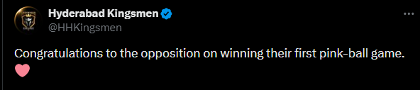 লাহোরের গাদ্দাফি স্টেডিয়ামে গত রাতে লাহোর কালান্দার্স-হায়দরাবাদ কিংসমেন ম্যাচ দিয়ে শুরু হয়েছে ১১তম পিএসএল। দর্শকশূন্য স্টেডিয়ামে অনুষ্ঠিত টুর্নামেন্টের প্রথম দিনই ঘটল বিরল ঘটনা। সাদা বলের রং বদলে সেটা হয়ে গেল মেরুন। তাতে করে বদলাতে হয়েছে বলও। এটা নিয়ে রসিকতা করতে ছাড়েনি হায়দরাবাদ কিংসমেনও। ম্যাচ শেষে নিজের অফিশিয়াল এক্স হ্যান্ডলে হায়দরাবাদ লিখেছে, ‘নিজেদের প্রথম পিঙ্ক-বল ম্যাচ জেতার জন্য প্রতিপক্ষকে অভিনন্দন।’