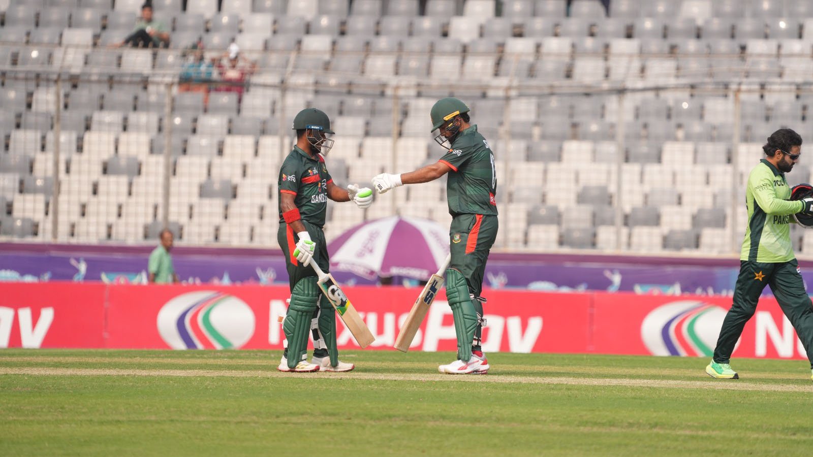প্রথম তিন ওভারেই একটি করে উইকেট হারিয়েছে পাকিস্তান। প্রথম ওভারের পঞ্চম বলে তাসকিন আহমেদের হঠাৎ লাফিয়ে ওঠা বলে কিছু বুঝে ওঠার আগেই খোঁচা দিয়েছেন সাহিবজাদা ফারহান। উইকেটরক্ষক লিটন দাস সহজেই সেটা তালুবন্দী করেছেন। ঠিক তার পরের ওভারে আরেক ওপেনার মাজ সাদাকাতকে ফেরান নাহিদ রানা। শর্ট বলে তুলে মারতে গেলে টাইমিংয়ে গড়বড় হওয়া বল ক্যাচ ধরেছেন লিটন। ফারহান, সাদাকাত দুজনেই ৬ রান করেছেন। যেখানে সাদাকাত আউট হওয়ার আগেই একটা ছক্কা মেরেছিলেন রানার ওভারে।