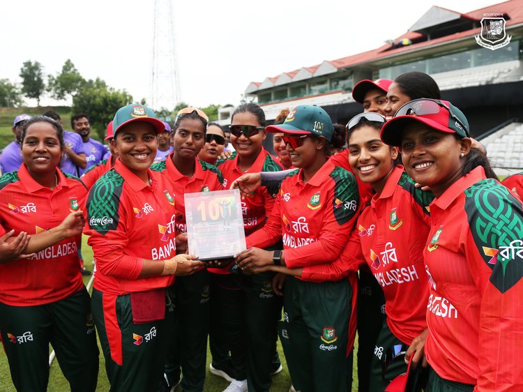 সিলেটে শ্রীলঙ্কার বিপক্ষে নামার আগেই বাংলাদেশের ক্রিকেটারদের মুখে হাসি। আন্তর্জাতিক টি-টোয়েন্টিতে শততম ম্যাচ খেলতে নামা নাহিদা আক্তারের হাতে তুলে দেওয়া হলো স্মারক। মাইলফলকের ম্যাচে খেলার আগে সতীর্থরা ছবি তুলেছেন বাংলাদেশের বাঁহাতি স্পিনারের সঙ্গে। কিন্তু দিনশেষে এই হাসি মিলিয়ে গেছে সতীর্থদের ব্যর্থতায়।